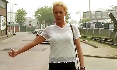 german milf picked up for brutal backseat three way fuck