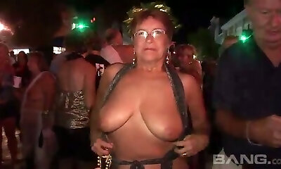 These mature chicks love to flash in public and they've got big natural tits
