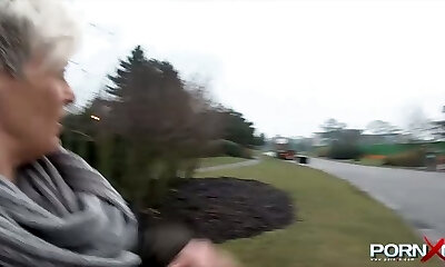 This exhibitionistic granny knows the finest way to remove leaves in her yard