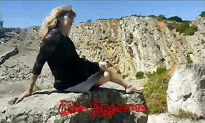Kinky honey enjoys fingering her tight asshole in public
