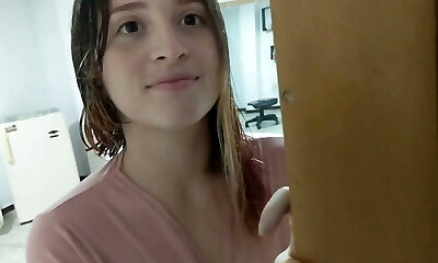 busty 18yo brunette experiences Multiple Splashes from a HUGE dildo in her ASS