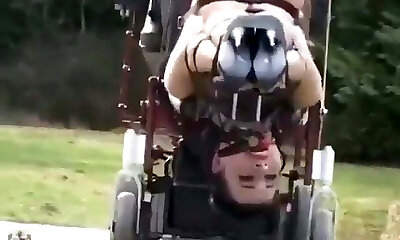tied upside down with open gams & mechanic Fucked