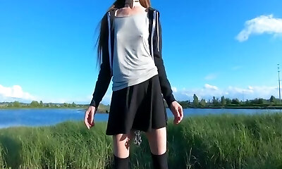 Public Peeing, Short Skirts, Public Pussy Chain, A Day In Town With No Diaper
