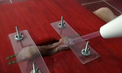 Blonde put Dick Cell Bondage, Sucks and Pulls guy's Balls, Cock Fetish