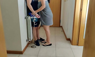 Slut wife handcuffs and pounds delivery guy until he cums inside her
