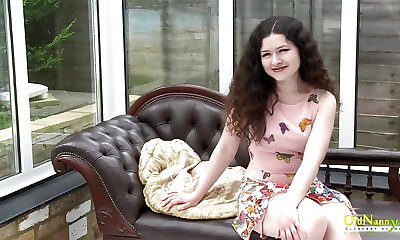 Small brunette cutie gets her bum spanked by a kinky pal