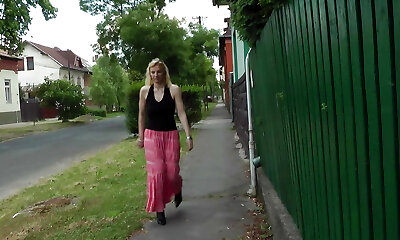 Platinum-blonde Mistress and a slaveboy