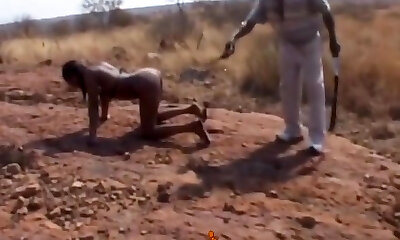 Harsh Outdoor Spanking And Tormenting With Busty African