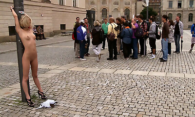 Public abasement for tied up Anya Krey by Tina Kay and strangers