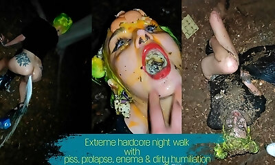 Extreme hardcore night walk with piss, enema, ass inside-out and dirty dehumanization