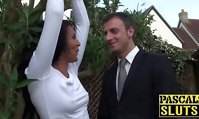 After being caught smoking the blonde milf has her micro-skirt lifted and her shaved fuckbox humped for discipline