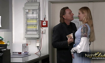 Stockings wearing german slut pleasing a firm pecker with her incredible pussy