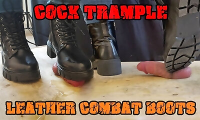 Crushing his Cock in Combat Boots Black Leather - CBT Bootjob with TamyStarly - Kicking Balls, Femdom
